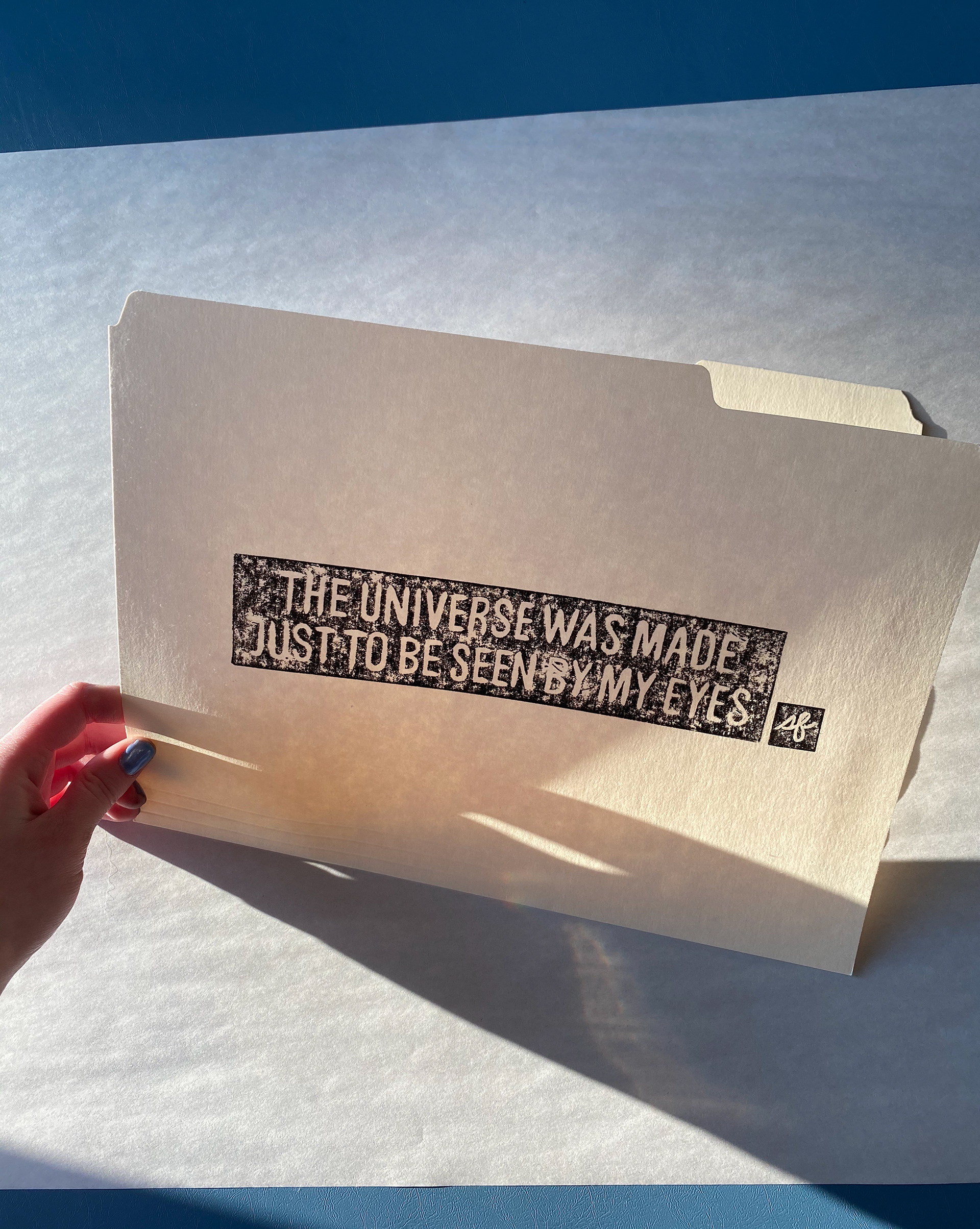 This relief print series was carved on linoleum block and printed by hand on a variety of materials.