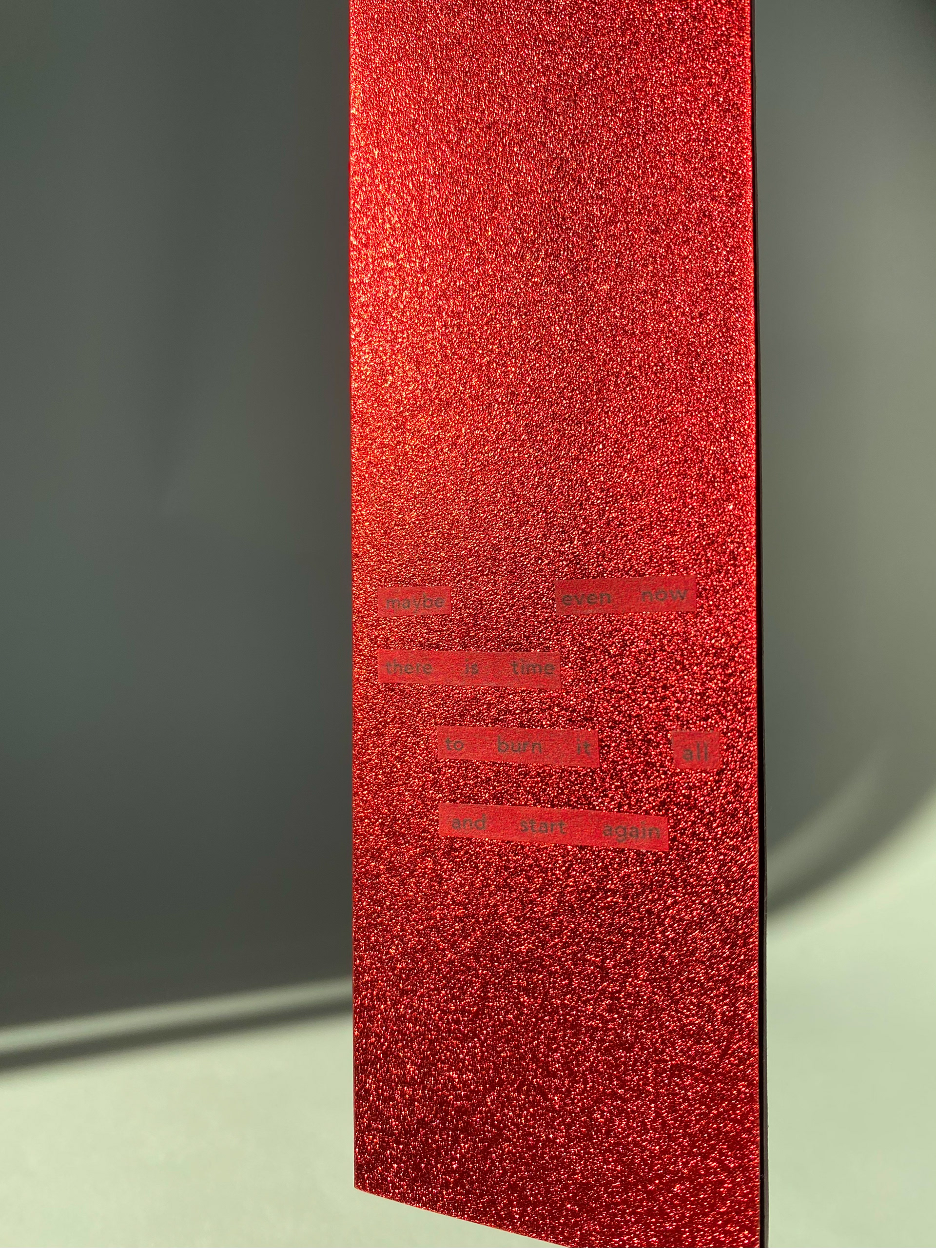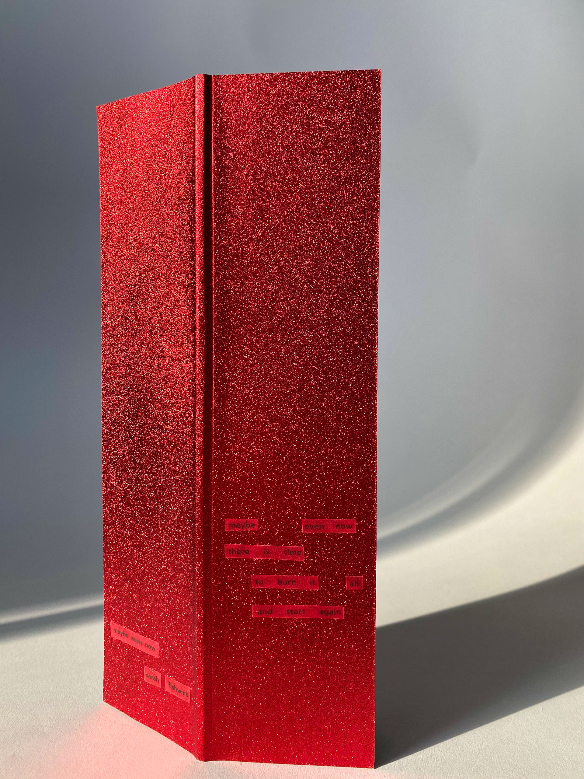 Maybe Even Now is a hand bound "match" book examining the quick ignition of a match in utterly slow detail.