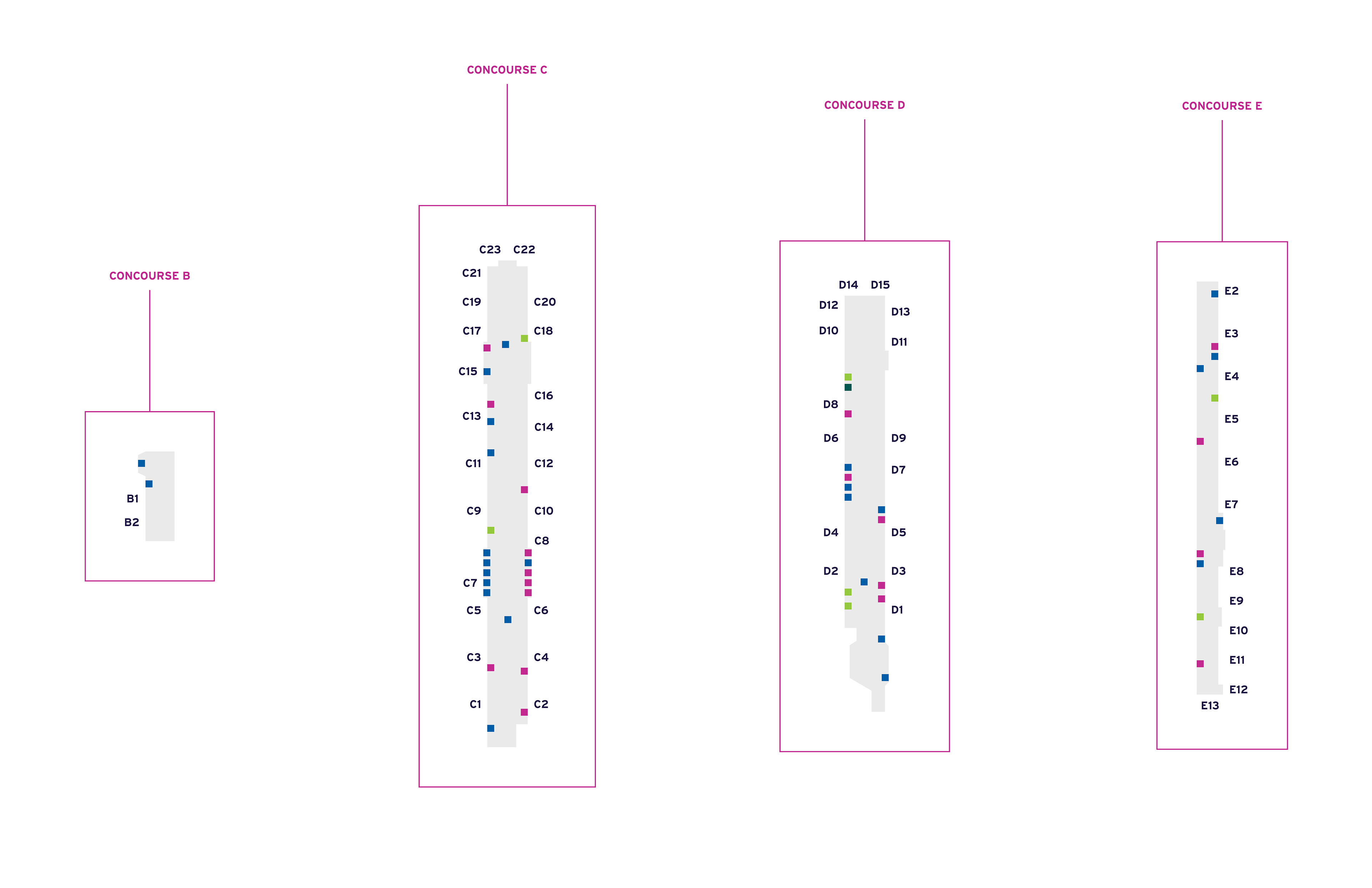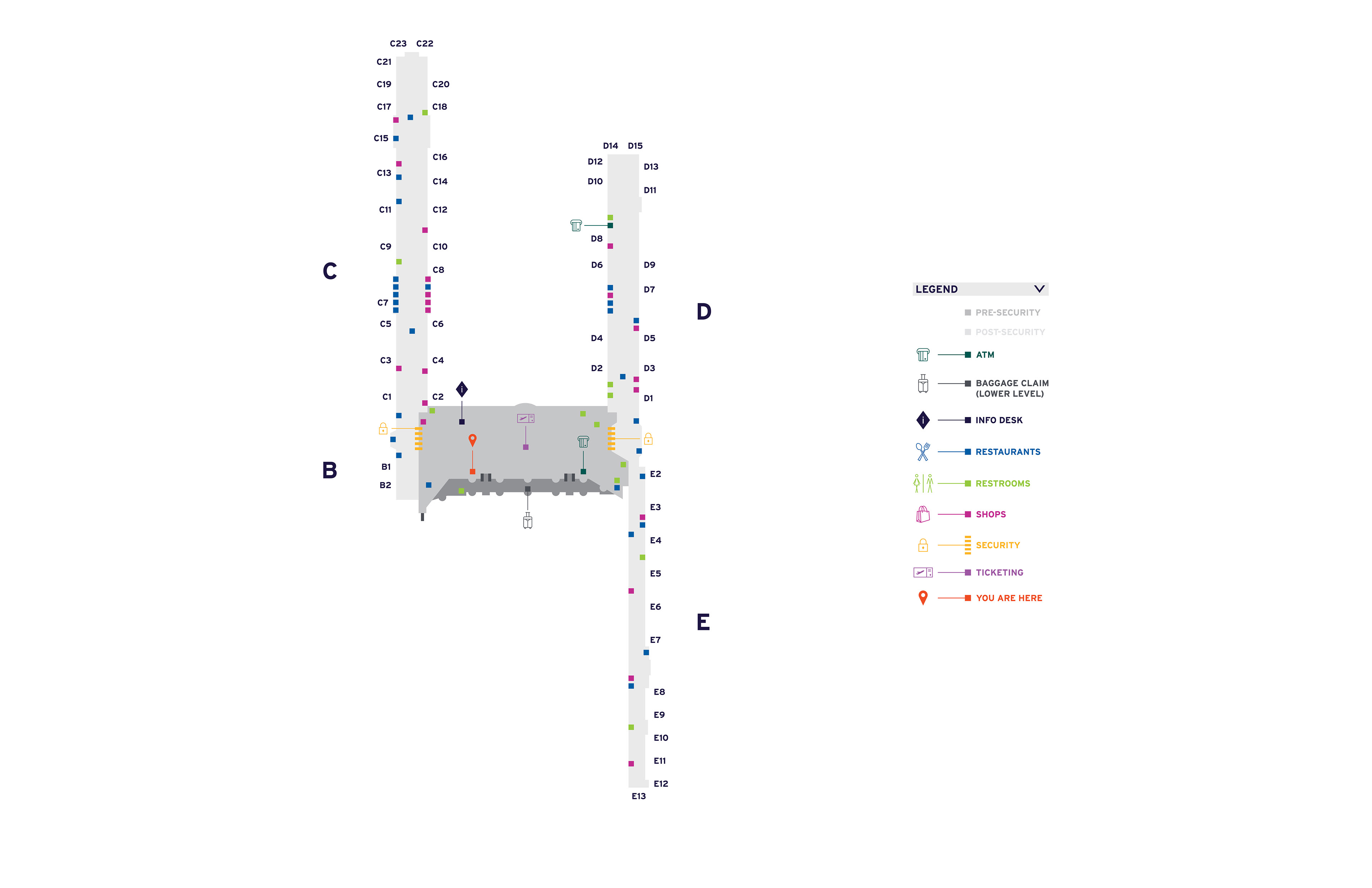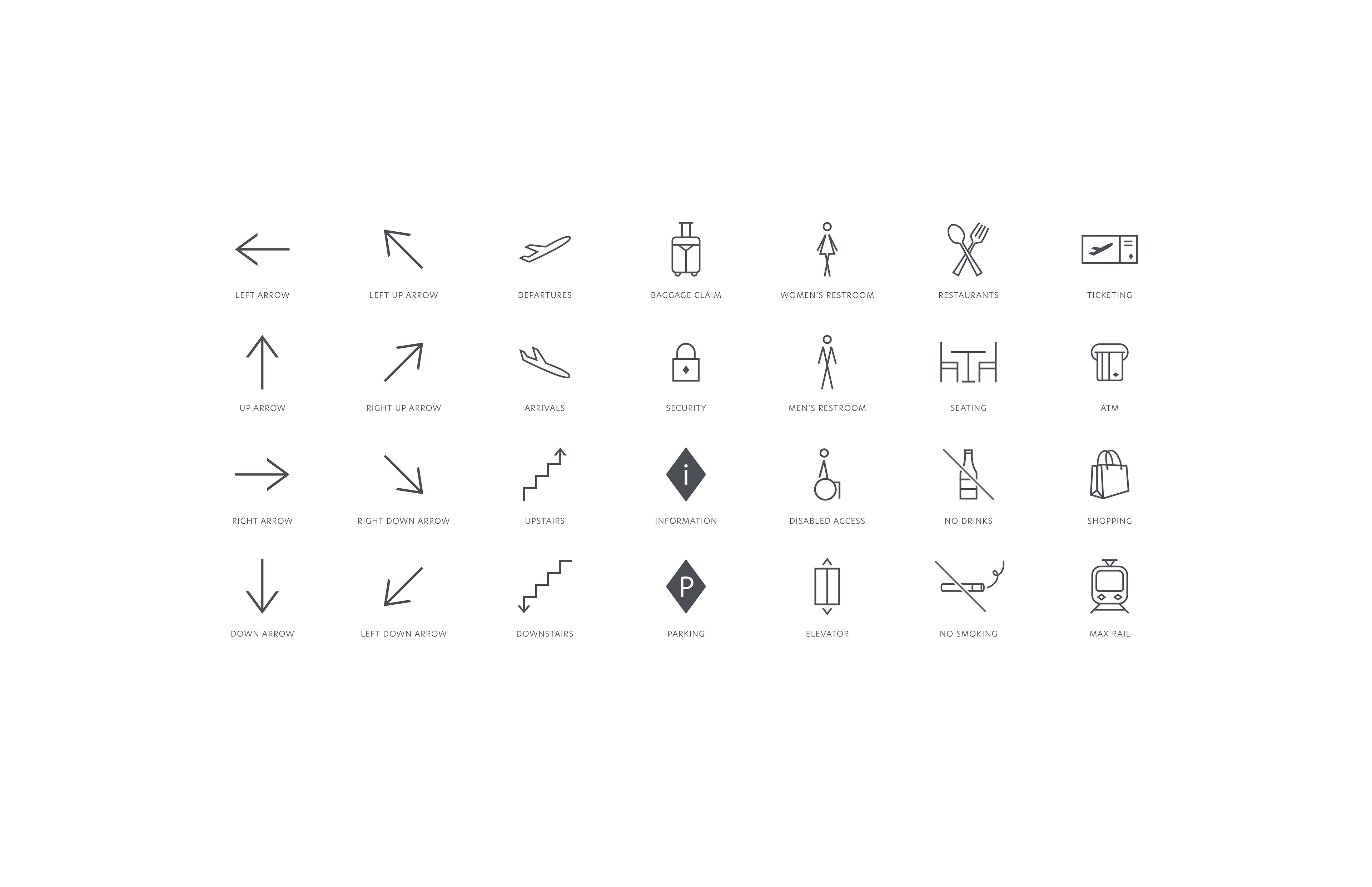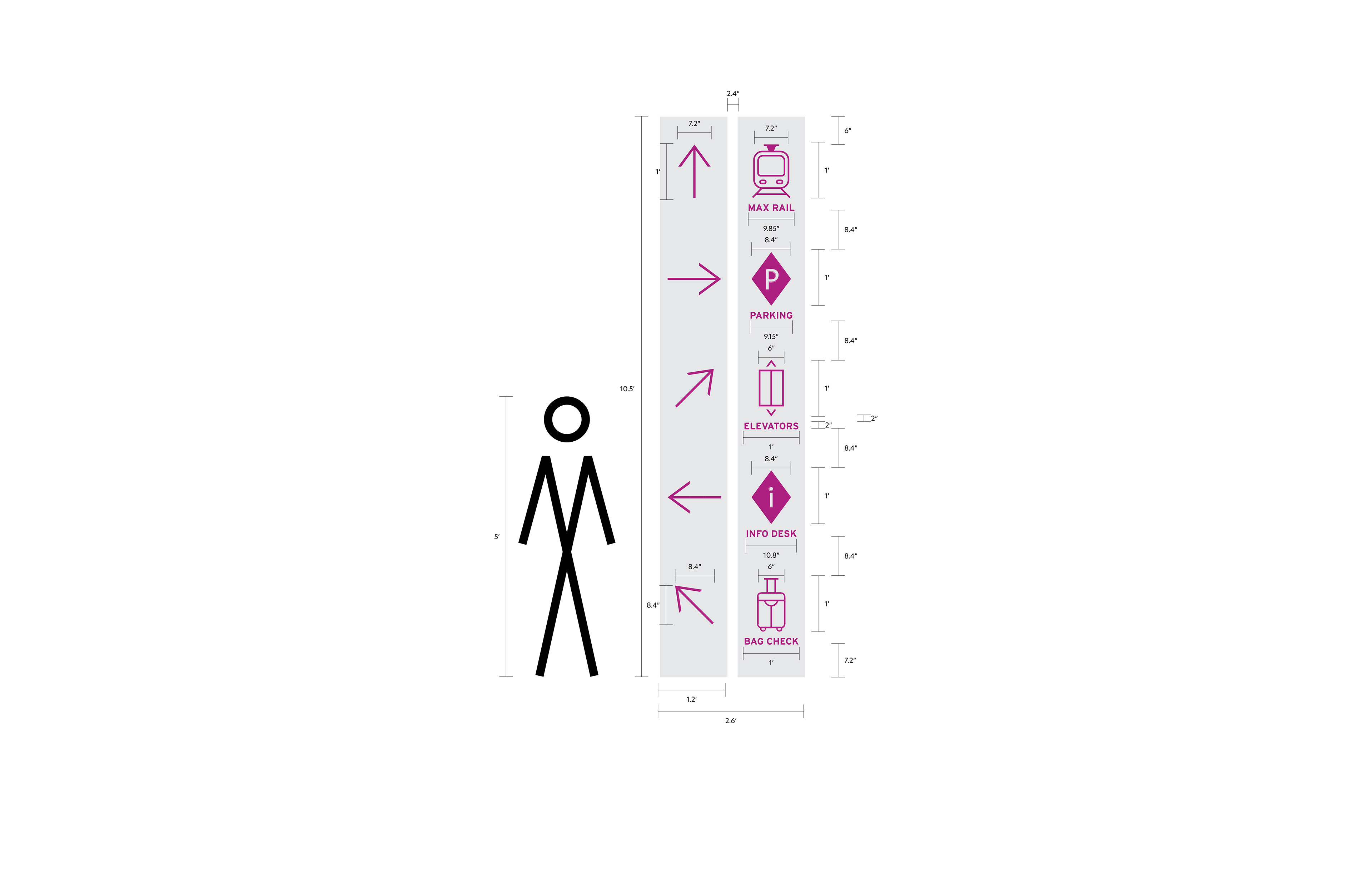 PDX's airport redesign allows for easy navigation through the use of pictograms, typography, color, and design.