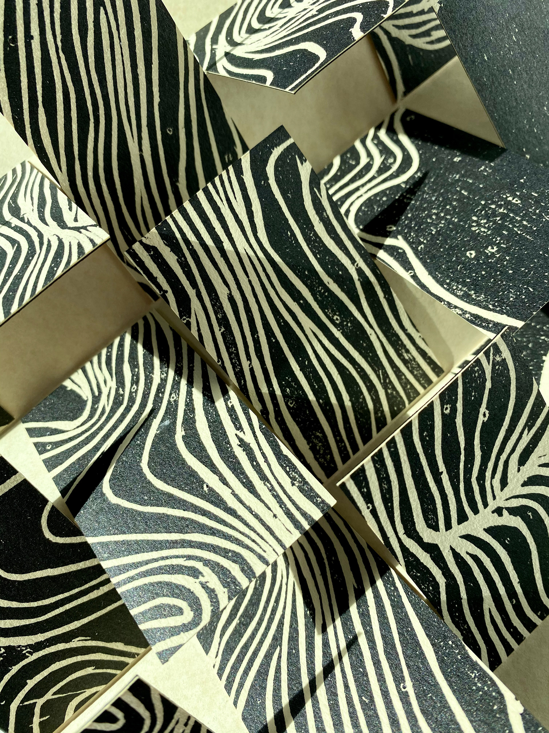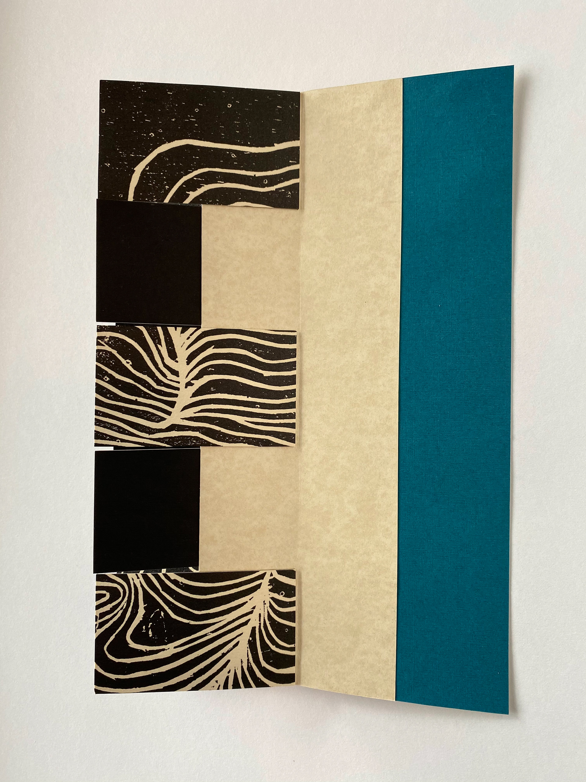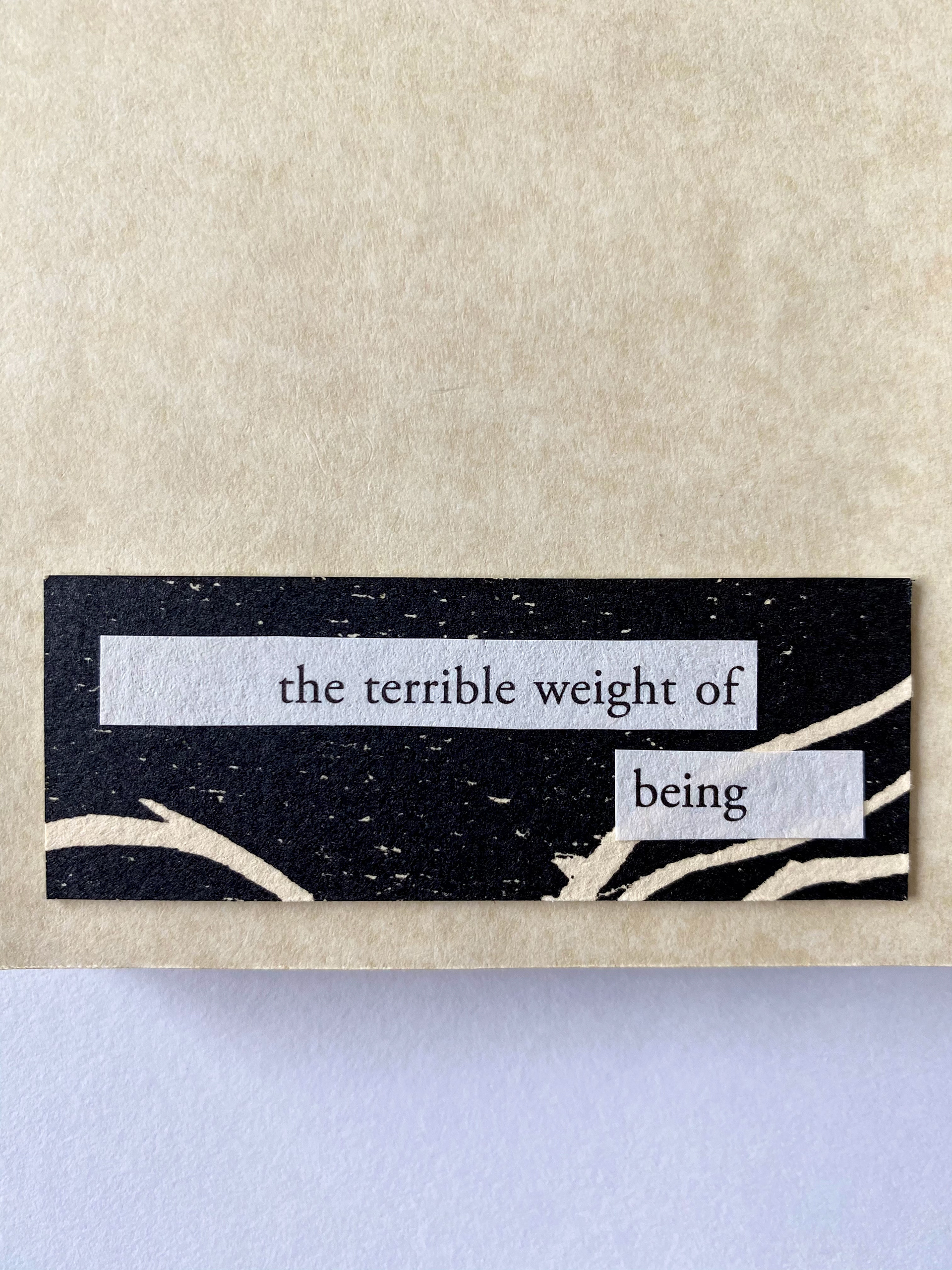 The Terrible Weight of Being is a hand-crafted flag book consisting of intaglio print and cut out poetry.